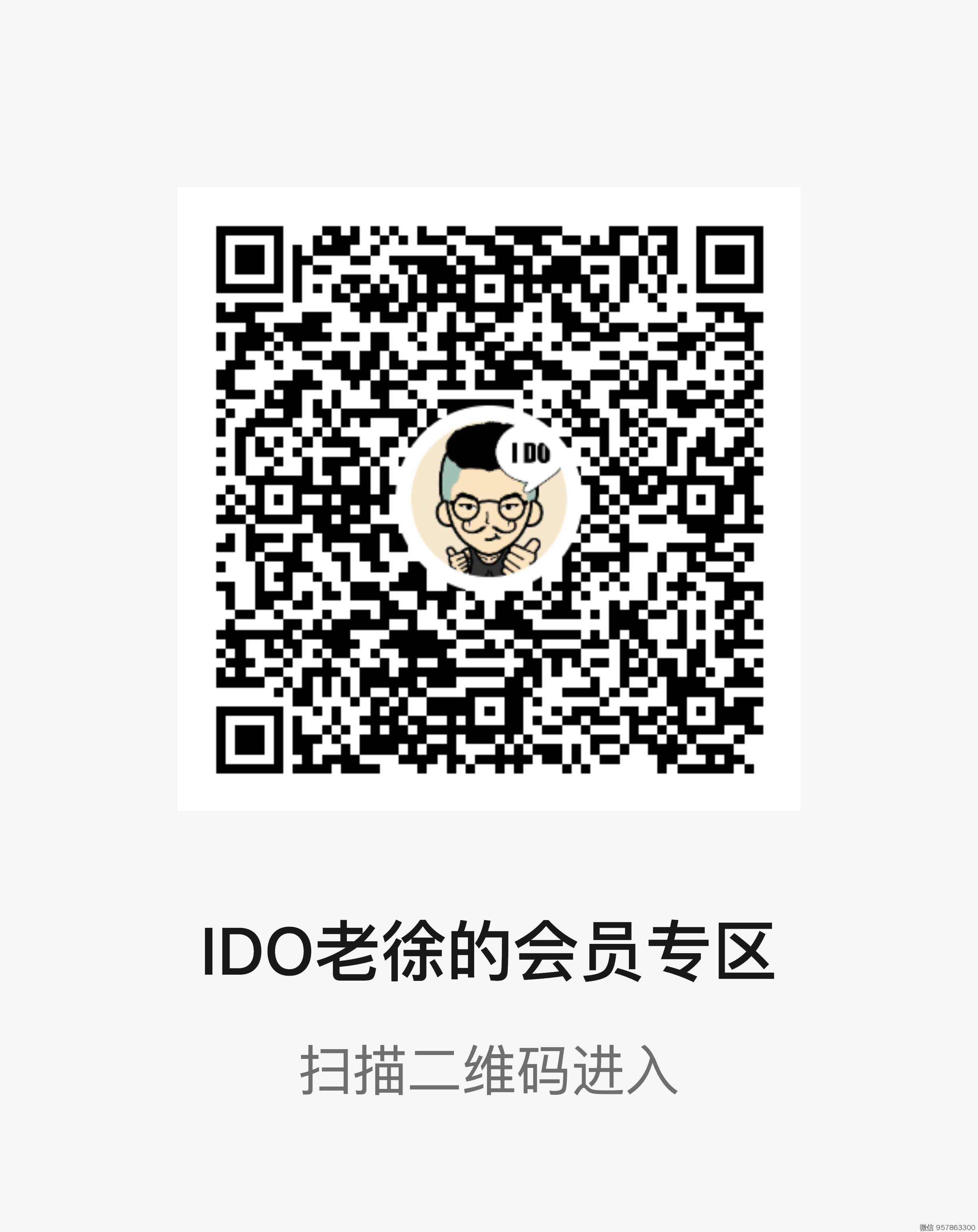 IDO老徐 的会员专区:1、专属问答,2、专属视频,3、专属直播课,4、过往有价值的直播回放(录播,重复听)