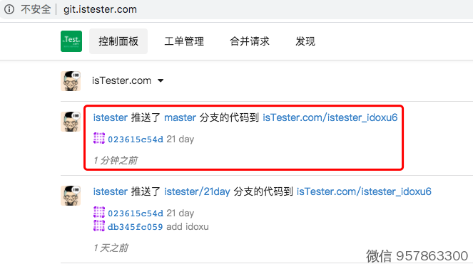 3、接下来,我们把 istester/21day 的文件,合并到master分支
