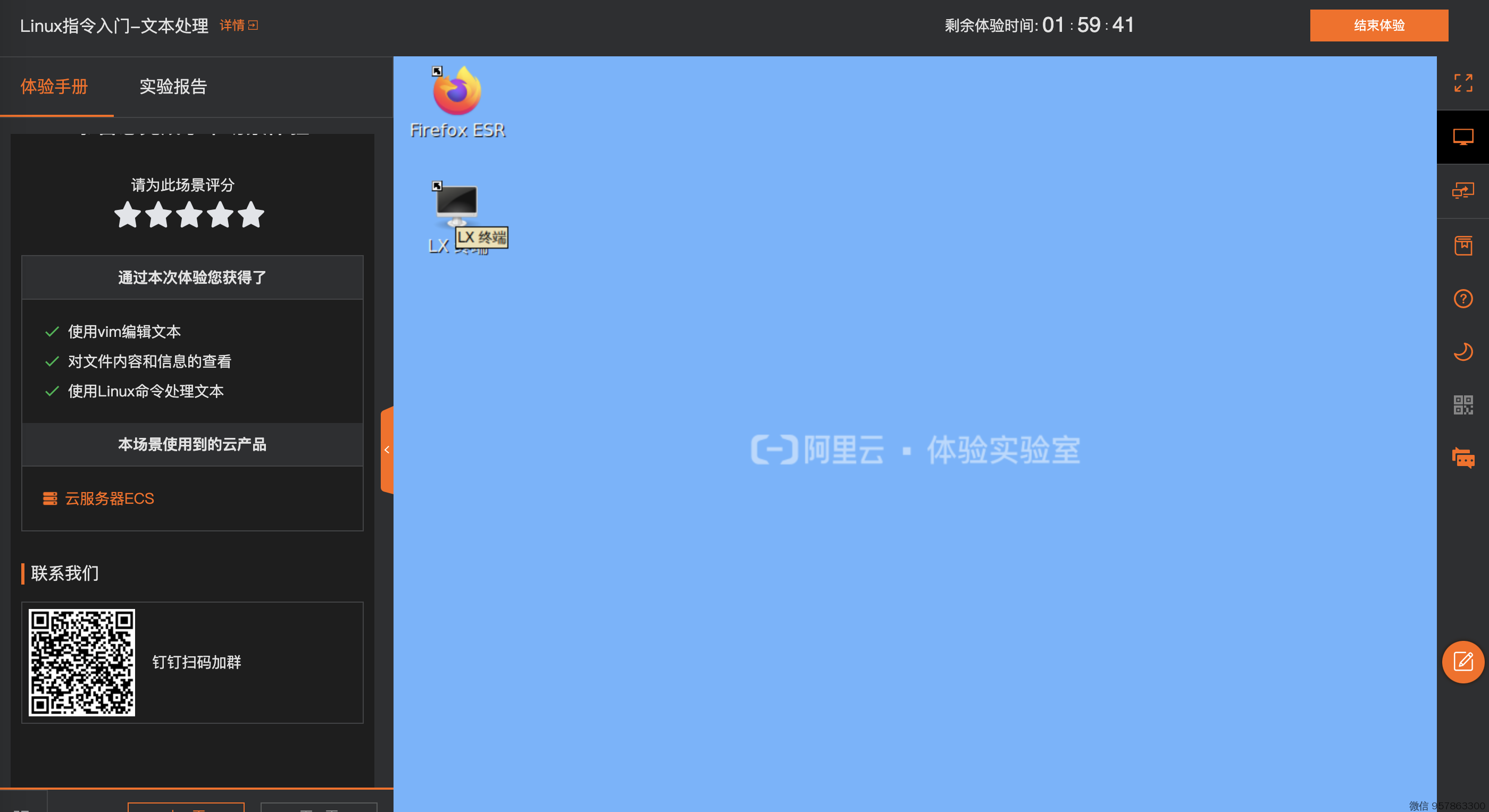 阿里云提供了 两个小时的免费(其实可以一直用,2小时结束后,可重新创建) 云机器,可以在线体验 Linux命令