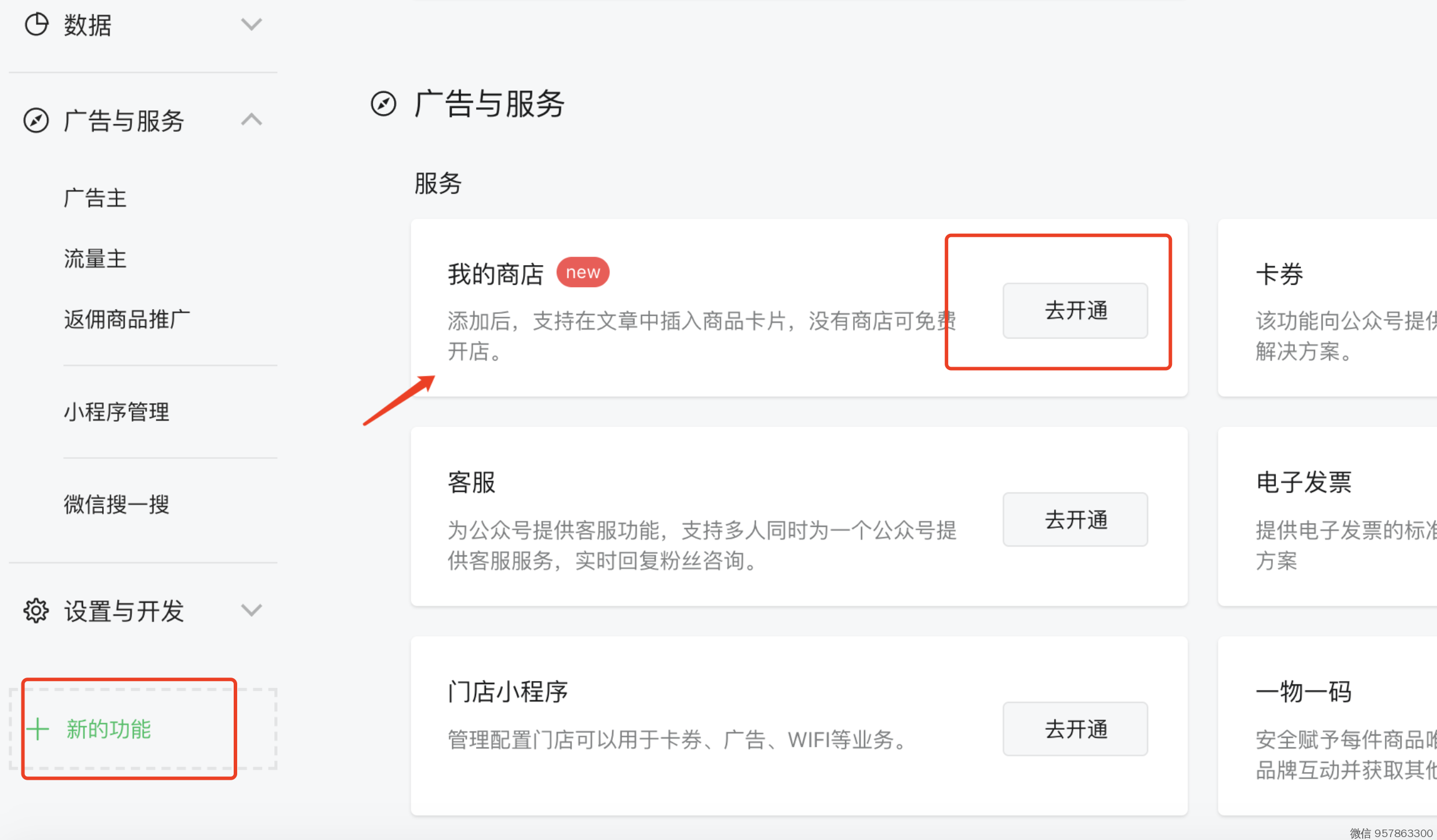 1、去 公众号 设置,开通「我的商品」
